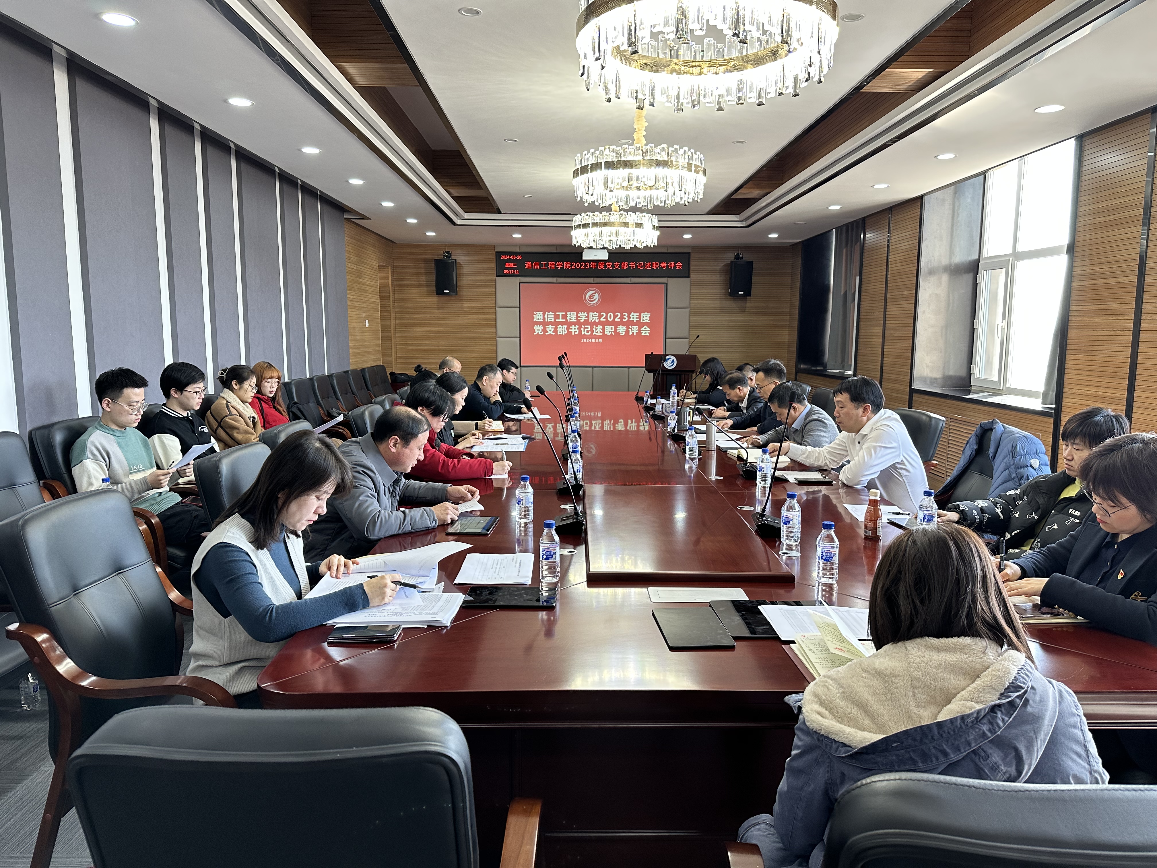 在南湖校区五楼会议室召开了党支部书记述职考评会。学院领导班子成员、党委委员、纪委委员、党支部书记参加会议。会议由党委书记董宏志主持。