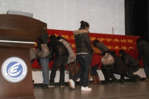 研究生恪守学术道德宣誓仪式”及现场签名活动。全体研究生神情肃穆,用整齐嘹亮的声音宣读了崇尚道德、敬畏学术的庄严誓词,并纷纷登台把自己的名字签写在誓言板上,这把整个大会的气氛推向了高潮。本次大会也是h次元