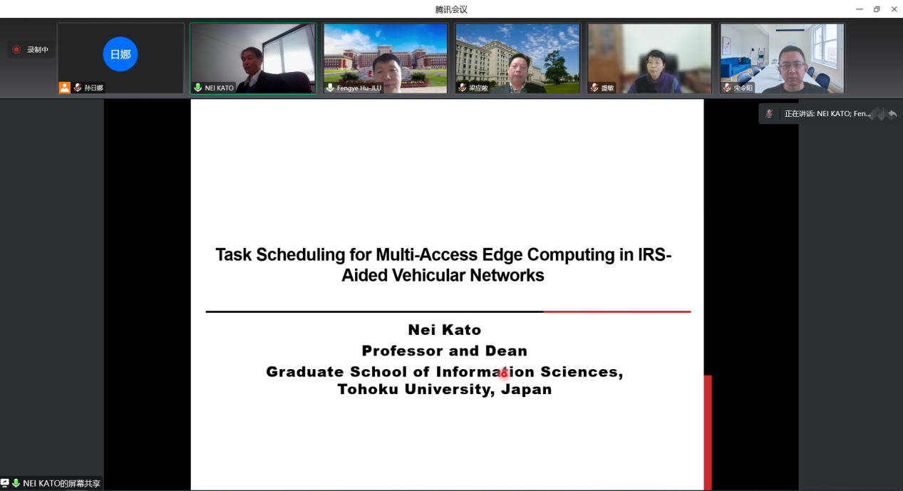 Professor Nei Kato, Tenured Professor of Tohoku University, Distinguished Lecturer of IEEE Communications Society and Vehicular Technology Society, Fellow of the Engineering Academy of Japan, IEEE Fellow and IEICE Fellow, delivered a keynote speech entitled "Task Scheduling for Multi-Access Edge Computing in IRS-Aided Vehicular Networks"
