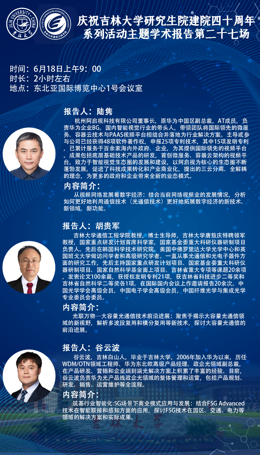 在长春东北亚博览中心举办了“光通信与光网络未来发展”学术报告会。本次会议吸引了众多行业重点领域的专家、学者和企业家齐聚一堂,共同探讨光通信领域的未来技术发展、市场应用和人才培养。会议由h次元
