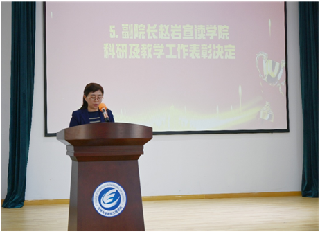 表彰环节中,为鼓励全院教师积极投入科研和教学工作,副院长赵岩宣读了本年度学院科研贡献奖和教学贡献奖的表彰决定,对过去一年中,为学院教学和科研工作做出突出贡献的人员进行表彰,共计16人和4个团队获奖。胡贵军教授代表获奖教师和团队发言,他讲到,今年获批国家重点研发项目是自己、团队、学院和学校共同努力的结果,时光不负有心人,星光不负赶路人,经历了7个多月的呕心沥血,披星戴月,最终和国内顶尖单位的科研团队竞争并胜出,这其中的艰辛历历在目,在今后的工作中,也将以此为契机,立足国家长远发展需求和世界科技前沿,谱写高水平科技自立自强的新篇章。