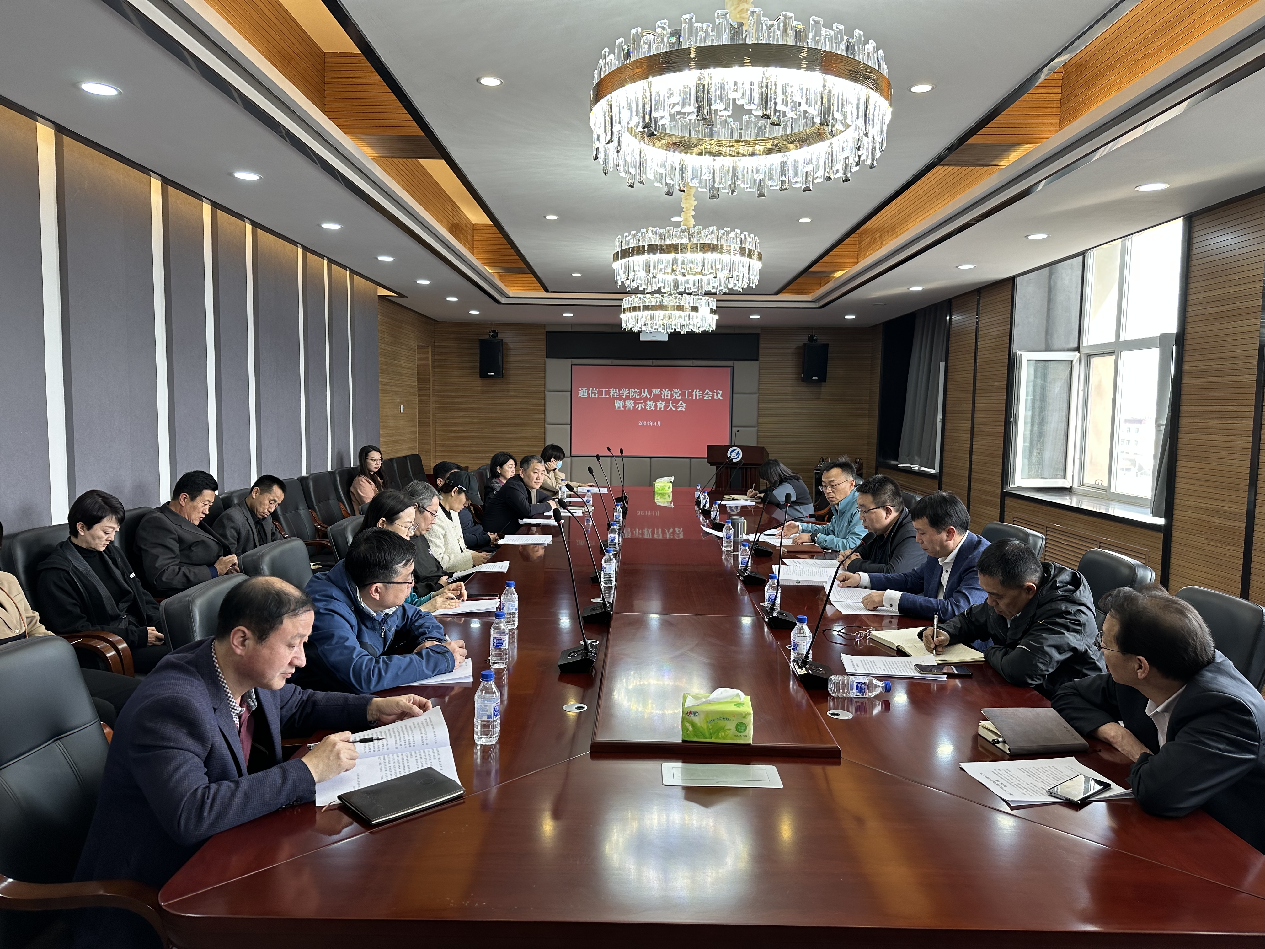 召开了从严治党工作会议暨警示教育大会。学院领导班子成员、党委委员、纪委委员、各系(中心)主任、党支部书记、机关全体行政人员、学生代表参加了会议。会议由党委书记董宏志主持。