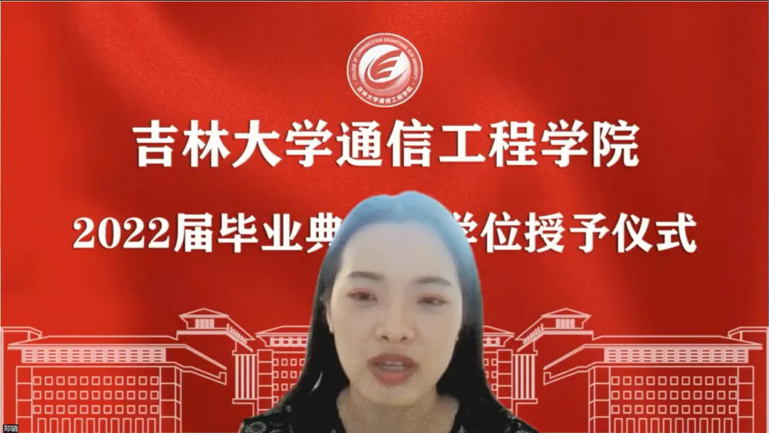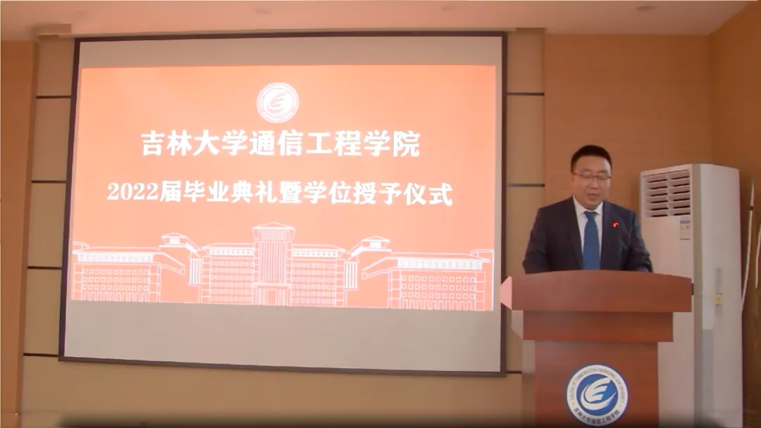 A grand graduation ceremony for the 2022 graduates at the College of Communication Engineering (CCE) of Jilin University was held at 9:30 am on 21 June, 2022 online and offline simultaneously. All leaders, some faculty representatives, and all school counselors of the CCE attended the ceremony at the main venue, and all graduates joined the particularly meaningful “online ceremony” via a whole-process HD live streaming platform. Chai Huai, Deputy Secretary of the CCE CPC Committee, presided over the ceremony.