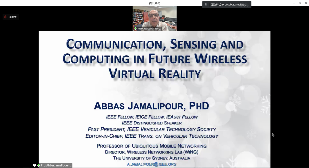 Professor Abbas Jamalipour, Professor of Ubiquitous Mobile Networking, IEICE Fellow, IEA Fellow, former President of the IEEE Vehicular Technology Society, and Editor-in-Chief of IEEE Transactions on Vehicular Technology, delivered a keynote speech entitled "Communication, Sensing and Computing in Future Wireless Virtual Reality"