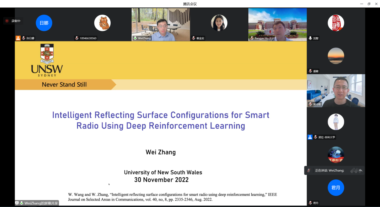 On November 30, 2022, from 8:30 to 17:00, the International Seminar on the Integration of Next-generation Communication-Sensing-Computing was successfully held online. The seminar was jointly organized by the College of Communications Engineering of Jilin University, the School of Optoelectronic Engineering of Changchun University of Science and Technology, the Key Laboratory of Intelligent Sensing and Network Technology of Jilin Province, and the National "111" Center for Optoelectronic Information Perception and Intelligent Instruments of the Ministry of Education. The conference covers all aspects of communication-sensing-computing integration, providing a new platform for in-depth exchanges and cooperation between experts and scholars in related scientific research fields in the industry. More than 100 experts and scholars at home and abroad, as well as teachers and students from various universities, attended the conference.