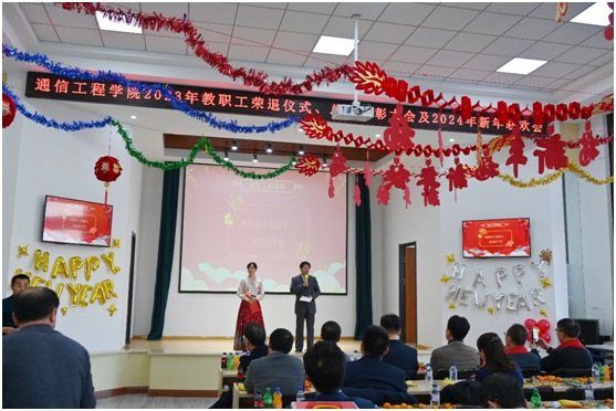 一曲由通信工程系带来的大合唱《祖国不会忘记》拉开了学院联欢会的序幕。合校以来,学院全体教师辛勤耕耘,为国家培养了一万多名人才,他们把青春融进祖国的江河,默默奉献,在辉煌事业的长河里,永远奔腾,不需要歌颂,不需要报答,教师们的努力学院不会忘记,祖国不会忘记。于大川老师带来诗朗诵《将进酒》,用充满雄性的嗓音和激昂的语调展现出了诗歌的豪迈,赢得了阵阵好评。电子工程系的《志愿军战歌》唱出了志愿军恢弘的气势,保和平,卫祖国,慷慨激昂,带着必胜的信念奋勇向前。电子实验中心以饱满的激情带来了歌曲《歌唱祖国》,歌颂了祖国的繁荣富强,歌颂了心中对祖国的爱。空间信息系通过《我和我的祖国》,抒发了满腔的爱国情怀,和对祖国真诚的赞美。控制科学与工程系带来的小品《缺点啥》更是将联欢会推向了新的高潮,绘声绘色的表演,妙趣横生,赢得了老师们的阵阵掌声和欢呼。李玲老师带来的诗朗诵《美丽中国》,为大家生动地描绘了祖国的壮丽山河,江山如此多娇。李慈海老师表演了陈式太极拳,一招一式,彰显大家风范。副院长李新波、副院长赵岩倾情演绎歌曲《阳光总在风雨后》,带着向阳而生,逐光而行的信念,坚信心有暖阳,就能不畏艰难险阻,坚定前行,迎来属于我们自己的阳光。最后,联欢会在学院机关全体人员的合唱《难忘今宵》中落幕,无论天涯于海角,不论新友与故交,此刻相聚在一起,共同庆祝新年的到来。