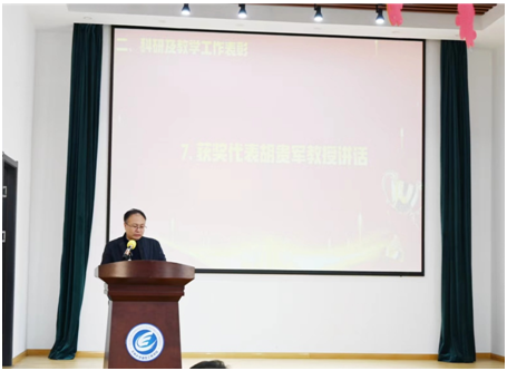 表彰环节中,为鼓励全院教师积极投入科研和教学工作,副院长赵岩宣读了本年度学院科研贡献奖和教学贡献奖的表彰决定,对过去一年中,为学院教学和科研工作做出突出贡献的人员进行表彰,共计16人和4个团队获奖。胡贵军教授代表获奖教师和团队发言,他讲到,今年获批国家重点研发项目是自己、团队、学院和学校共同努力的结果,时光不负有心人,星光不负赶路人,经历了7个多月的呕心沥血,披星戴月,最终和国内顶尖单位的科研团队竞争并胜出,这其中的艰辛历历在目,在今后的工作中,也将以此为契机,立足国家长远发展需求和世界科技前沿,谱写高水平科技自立自强的新篇章。