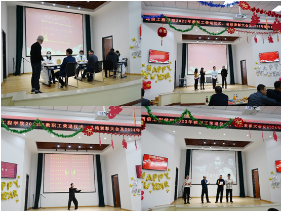 在南湖校区图书馆四楼报告厅成功举行2023年荣休仪式、总结表彰大会暨2024新年联欢会。学院全体领导班子成员、南湖校区事务办领导、全体教职工、2023年荣休教职工共计160余人参加。会议由副院长时玉平主持。